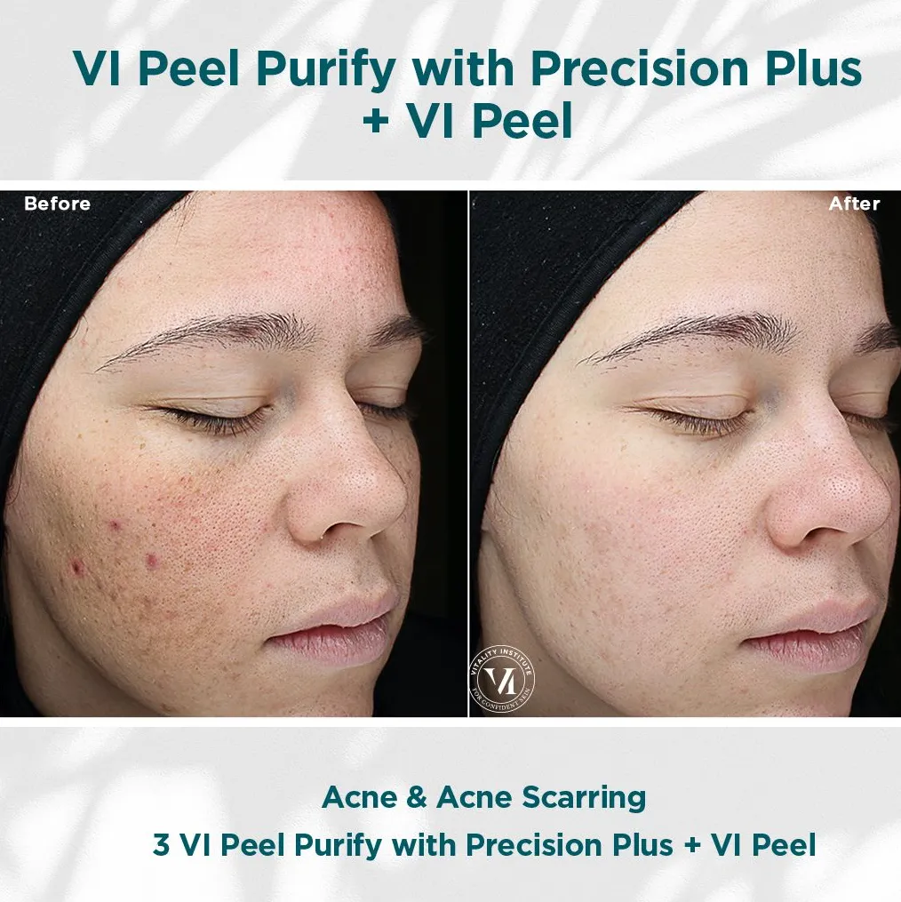 | The VI Peel Purify with Precision Plus – is the most comprehensive VI Peel for targeting both active acne and post-acne scarring/pigmentation. It is formulated to fade textural scarring and Post-Inflammatory Hyperpigmentation (PIH). |